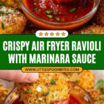 - Serve: Remove the ravioli from the air fryer and serve warm with tomato marinara sauce for dipping. Enjoy this crispy, cheesy delight as a snack or appetizer.