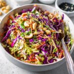 A vibrant and crunchy Asian Slaw featuring red and napa cabbage, shredded carrots, and optional cooked quinoa, tossed in a flavorful sesame ginger dressing with toasted cashews and sesame seeds. Perfect as a light, refreshing side salad with a balance of sweet, savory, and nutty flavors.