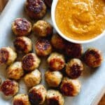 For special occasions, I’ve served these meatballs on skewers as appetizers, drizzled with a bright lemon-garlic yogurt sauce. It makes for a fun finger food that’s elegant but still casual. You could also lay them out as a party meatball platter with a few sauce options, veggies, and fresh bread for grazing.