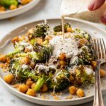 Pop both trays into the oven and roast for about 20 minutes, tossing halfway through. You’ll know they’re done when the broccoli is tender with those little charred edges you want, and the chickpeas have turned a rich golden brown and are crispy.