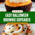 These Brownie Cupcakes combine the rich, fudgy texture of brownies with the light, fluffy texture of white cake, topped with creamy buttercream frosting and festive Halloween sprinkles. Perfect for a unique twist on classic desserts, these cupcakes offer layers of flavor and texture that delight both kids and adults alike.