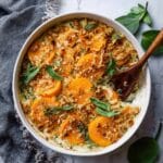 This Butternut Squash Gratin is a creamy, flavorful fall side dish featuring tender butternut squash slices baked with sautéed leeks, chopped sage, walnuts, and melted gruyere cheese. It’s rich with aromatic herbs and a subtle nutmeg seasoning, offering a comforting, elegant addition to your holiday table. The recipe is easily adaptable for vegan and gluten-free diets by substituting dairy ingredients accordingly.