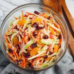 A refreshing and vibrant carrot apple salad combining crisp apples, matchstick carrots, tangy lemons, and sweet cranberries, all brought together with a creamy dressing of vanilla yogurt and mayo. This make-ahead salad is chilled to meld flavors perfectly and is ideal for a light, healthy side dish or snack.