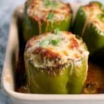 After enjoying your peppers, wrap leftover stuffed peppers tightly with plastic wrap or place them in an airtight container and refrigerate for up to 3 days. I’ve found the flavors actually deepen overnight, making leftovers even better.