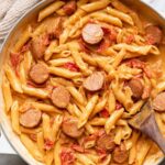 Cheesy Kielbasa Pasta is a hearty and flavorful one-pan meal featuring sliced kielbasa sausage, penne pasta, and a rich blend of Italian-seasoned tomatoes and broth, topped off with melted Cheddar-Jack cheese. Ready in just 35 minutes, this creamy and comforting dish is perfect for a busy weeknight dinner with family or friends.