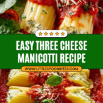 Delicious and creamy Three Cheese Manicotti filled with a rich mixture of ricotta, mozzarella, parmesan, fresh basil, and aromatic spices, all baked under a savory marinara sauce until bubbly and golden. This comforting Italian-American pasta dish is perfect for family dinners or special occasions.