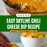 Skyline Dip, also known as Chili Cheese Dip, is a deliciously creamy and cheesy appetizer combining a smooth layer of cream cheese, authentic Cincinnati-style Skyline chili, and melted cheddar cheese. This baked dip is perfect for parties and game days, best enjoyed with Fritos scoops or tortilla chips.