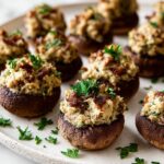 One of my favorite ways to jazz them up for special occasions is to arrange the stuffed mushrooms on a large rustic wooden board with fresh herb sprigs and small bowls of dipping sauces like garlic aioli or a tangy balsamic glaze. It feels festive and makes guests feel like they’re in for a treat. You could also serve them stacked on a tiered platter for more drama.
