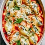 I like to finish these stuffed shells with a sprinkling of fresh basil leaves. It adds such a lovely pop of color and a fresh, peppery note that balances the creamy richness of the dish perfectly. Sometimes, I’ll also add a little extra grated Parmesan right at the table for the cheese lovers in the family.