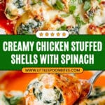 - Stuff Shells: Pour the creamy tomato sauce evenly into a 9×12-inch baking dish. Using a spoon or your hands, fill each jumbo shell with the prepared chicken and spinach mixture. Arrange the stuffed shells in the baking dish in a single layer.