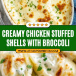 Delicious Chicken Stuffed Shells filled with tender chicken, broccoli, ricotta, mozzarella, and Parmesan cheeses, all smothered in a rich, creamy garlic Alfredo sauce. This comforting baked pasta dish is perfect for family dinners and special occasions.