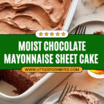 This rich and moist Chocolate Mayonnaise Sheet Cake uses mayonnaise instead of butter or oil to create a tender texture and deep chocolate flavor, enhanced with cinnamon and a luscious Chocolate-Cream Cheese Frosting. Perfectly baked in a 13×9-inch pan, it’s an easy-to-make dessert that impresses with its homemade charm and indulgence.