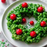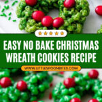 These festive Christmas Wreath Cookies are a delightful no-bake treat combining buttery marshmallow mixture with crunchy cornflakes, tinted green and adorned with red candies for a perfect holiday snack. Quick to prepare and fun to shape, they add a charming touch to any holiday dessert spread.