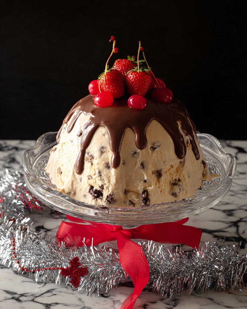 This Show-Stopping Christmas Ice Cream Pudding is a festive and delightful dessert combining traditional Christmas pudding flavors with creamy vanilla ice cream. Infused with soaked dried fruits, nuts, and warming spices, this no-bake frozen treat is perfect for holiday celebrations. With just 10 minutes of prep and an overnight freeze, it’s an impressive, easy-to-make dessert that will wow your guests.