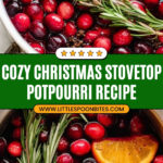 Christmas Stovetop Potpourri is a fragrant and cozy way to fill your home with holiday scents using a simmering blend of cranberries, cinnamon, rosemary, cloves, and citrus. Perfect for creating a festive atmosphere without the use of candles or artificial fragrances.