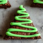 - Decorate the Trees: Starting at the top of each brownie triangle, gently pipe the green icing in a curvy zigzag pattern downward to mimic the branches of a Christmas tree. Immediately before the icing sets, decorate with small round sprinkles for ornaments and place a small star sprinkle at the top as the tree topper.