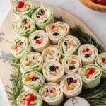 This festive Pinwheel Christmas Tree Appetizer is a delightful and visually stunning party treat perfect for holiday gatherings. Creamy, flavorful, and colorful, these cream cheese and olive-filled tortillas are cut into pinwheels and arranged in the shape of a Christmas tree, garnished with fresh herbs and cherry tomatoes for a seasonal touch.