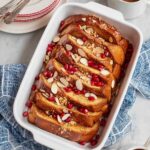I love topping this French toast bake with a handful of fresh pomegranate arils for that burst of tart flavor and a sprinkle of toasted almonds for crunch. A dusting of powdered sugar or a few fresh mint leaves also makes it look extra special when you’re serving guests.