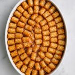- Add Tater Tots & Bake: Arrange the frozen tater tots in a single layer over the casserole’s surface. Bake uncovered for 40-45 minutes or until the casserole is bubbly and the tater tots are golden brown and crispy.