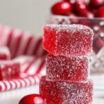 These Festive Cranberry Jelly Candies are a delightful sweet treat made with pure cranberry juice and gelatin, resulting in a chewy, tangy candy coated in granulated sugar for a crunchy finish. Perfect for holiday gifting or a seasonal snack, these candies combine the tartness of cranberries with a sweet sugar coating, offering a beautifully vibrant and refreshing jelly candy experience.