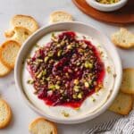 I store any leftovers in an airtight container in the fridge for up to 3 days. Because the cranberry mixture and whipped feta are layered, they might separate a little over time—just gently stir them together or layer fresh pistachios on top before serving again, and it’s like new.
