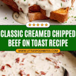 For weekend brunches, I’ve served this creamed chipped beef in small ramekins alongside mini toasted crostinis as a fun finger food option. It’s also great served over baked potatoes instead of toast for a hearty twist that your guests will rave about.