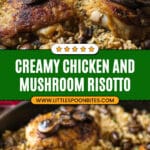 - Skillet Chicken and Mushroom Risotto is a plate of tender and creamy risotto with added sautéed mushrooms, topped with juicy, pan-seared chicken.