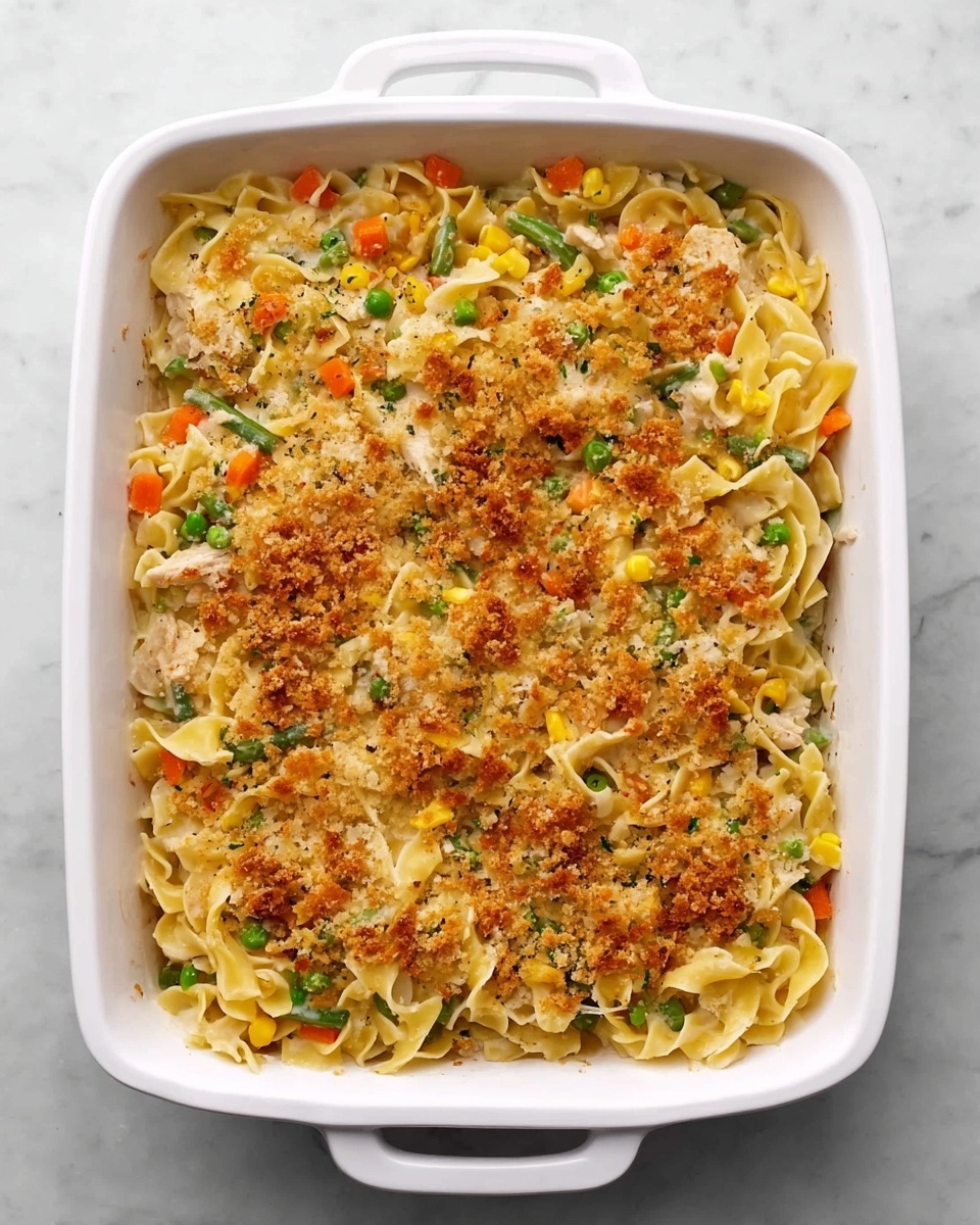 This comforting Chicken Noodle Casserole combines tender egg noodles, cooked chicken, creamy soup, mixed vegetables, and melted cheddar cheese, topped with buttery breadcrumbs. It’s an easy-to-make, hearty family meal perfect for weeknights or cozy gatherings.