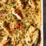 This creamy Chicken & Rice Casserole is a comforting and flavorful one-dish meal featuring tender shredded chicken, long-grain rice, sautéed onions and garlic, condensed mushroom soup, and a golden Parmesan cheese topping. Baked to perfection and finished under the broiler for a crispy cheesy crust, it’s perfect for family dinners or meal prep.