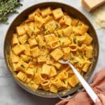 I love topping this pasta with a sprinkle of extra parmesan, some toasted pumpkin seeds for crunch, and a few fresh sage leaves to amp up the flavor and add a pretty finishing touch. A drizzle of good olive oil just before serving also never hurts!