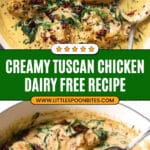 This 25-Minute Creamy Tuscan Chicken is a dairy-free, flavorful dish featuring tender chicken thighs or breasts simmered in a rich, coconut milk-based sauce with sun-dried tomatoes, fresh spinach, and herbs. Perfect for a quick weeknight meal, it delivers creamy comfort without the dairy and pairs well with rice, vegetables, or cauliflower rice.