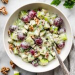 I usually pair this Creamy Waldorf Salad with apples and walnuts with simple favorites like roasted chicken, grilled salmon, or even a veggie quiche. It cuts through rich dishes with its crisp texture and fresh flavors, making it a perfect balance on the plate.