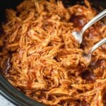 Once your chicken is perfect and juicy, shred it right in the slow cooker using forks. I always mix it back into the sauce so every bite is juicy, tender, and packed with that mouthwatering BBQ flavor.