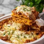 For special occasions, I sometimes serve individual portions in small ramekins layered just like the big crockpot. It makes for a charming presentation and everyone gets their own perfectly portioned lasagna. Plus, it keeps everyone’s servings neat and tidy!