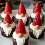 Delightfully whimsical and easy-to-make Brownie Bite Gnomes featuring rich brownie bases topped with creamy cream cheese frosting, fresh strawberry hats, and crunchy Reese’s Puffs noses. Perfect for festive gatherings or fun dessert treats.