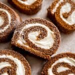 Pairing this pumpkin roll with a hot cup of coffee, chai tea, or even a spiced latte makes a perfect afternoon treat. It also shines alongside a scoop of vanilla ice cream if you want a decadent dessert pairing.