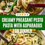 - Pheasant Pesto Pasta is a quick and creamy meal that combines tender pheasant with flavorful basil pesto and asparagus, perfect for a family dinner.