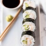 - Serve: Arrange the sushi pieces on a serving platter and accompany with soy sauce and wasabi for dipping.
