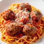 Dish out your al dente spaghetti onto plates, spoon over a generous helping of meatballs and tomato sauce, and finish with a sprinkle of Parmesan cheese. If you reserved pasta water, add a splash to loosen things up if needed. Grab a fork and dig in—you’ve just made something delicious and comforting from scratch.
