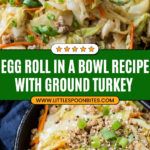 A quick and flavorful Egg Roll in a Bowl recipe that captures the essence of classic egg rolls without the wrapping. Ground turkey, shredded cabbage, carrots, and aromatic garlic and ginger come together in a savory soy-based sauce for a low-carb, healthy dinner option.