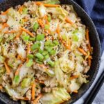 A quick and flavorful Egg Roll in a Bowl recipe that captures the essence of classic egg rolls without the wrapping. Ground turkey, shredded cabbage, carrots, and aromatic garlic and ginger come together in a savory soy-based sauce for a low-carb, healthy dinner option.
