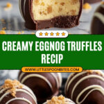 Indulge in these luscious Eggnog Truffles, a festive treat combining creamy white chocolate and rich cream cheese with the warm flavors of eggnog, nutmeg, and cinnamon. Coated in smooth dark chocolate and optionally drizzled with white chocolate and sprinkled with crushed gingersnaps, these bite-sized delights are perfect for holiday gatherings or gifting.