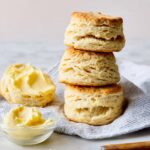 Be gentle with your dough and avoid over-kneading. Also, make sure not to add too much flour when rolling and dusting surfaces since extra flour can dry out the dough. Lastly, keep butter cold and don’t press or twist your biscuit cutter.
