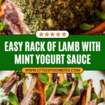 - Serve: Carve the rack into individual ribs. Serve each rib with a dollop of mint yogurt sauce on the side or drizzled on top. Enjoy your elegant and flavorful rack of lamb!
