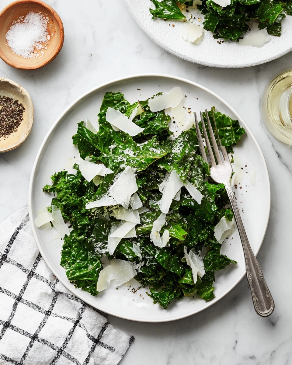 A simple and refreshing kale salad made with fresh lemon juice, garlic-infused olive oil, and shaved parmesan cheese. This light and nutritious salad is perfect as a flavorful side dish, featuring tender, massaged kale leaves that are easy to enjoy.