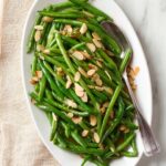 - Season and serve: Remove the skillet from heat. Taste and adjust seasoning with additional salt and pepper if needed. Transfer the Green Beans Almondine to a serving platter and serve warm as a delightful side dish.