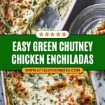 The Green Chutney Chicken Enchiladas Recipe has a mild to moderate spice level depending on the green chutney you use. You can always adjust by choosing a milder chutney or adding chili peppers for extra heat.