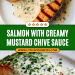 - Serve: Plate the grilled salmon steaks and generously drizzle the creamy mustard chive sauce over the top. Serve immediately for best flavor and texture.