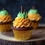 - Prepare the Frosting: Make buttercream frosting and portion out 1 cup, setting it aside. Divide the remaining frosting in half, tint one half yellow and the other half orange. Tint the reserved 1 cup of frosting green.