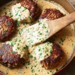 This classic Hamburger Steaks with Creamy Whiskey Sauce recipe offers juicy, tender ground beef patties seared to perfection and smothered in a rich, flavorful whiskey cream sauce. The combination of shallots, garlic, and a touch of whiskey creates a comforting dish perfect for a hearty weeknight meal.